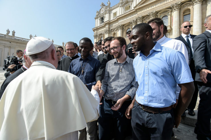 Ellos fueron recibidos por el papa Francisco este miércoles 30 de agosto de 2017, en la Audiencia general celebrada en la plaza de San Pedro. Los nigerianos fueron bautizados el 16 de agosto, junto a otros 11 jóvenes, en la ciudad de Chiusi, tras una arriesgada travesía del Mediterráneo desde África en busca de un futuro mejor.